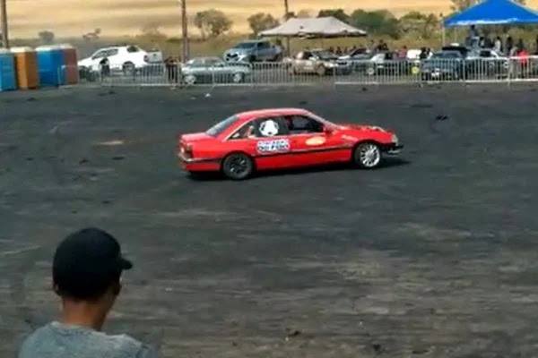 O garoto pilota um carro vermelho. Acompanhado do pai, ele faz uma manobra chamada popularmente de “cavalo de pau”, no entanto, sai da área destinada aos carros e acerta a grade que separa o público da pista. Neste momento, algumas pessoas que assistiam ao evento são atingidas. Uma gravação mostra uma das vítimas mancando, sendo socorrida por um colega. Outro vídeo, mostra uma confusão generalizada após o acidente.