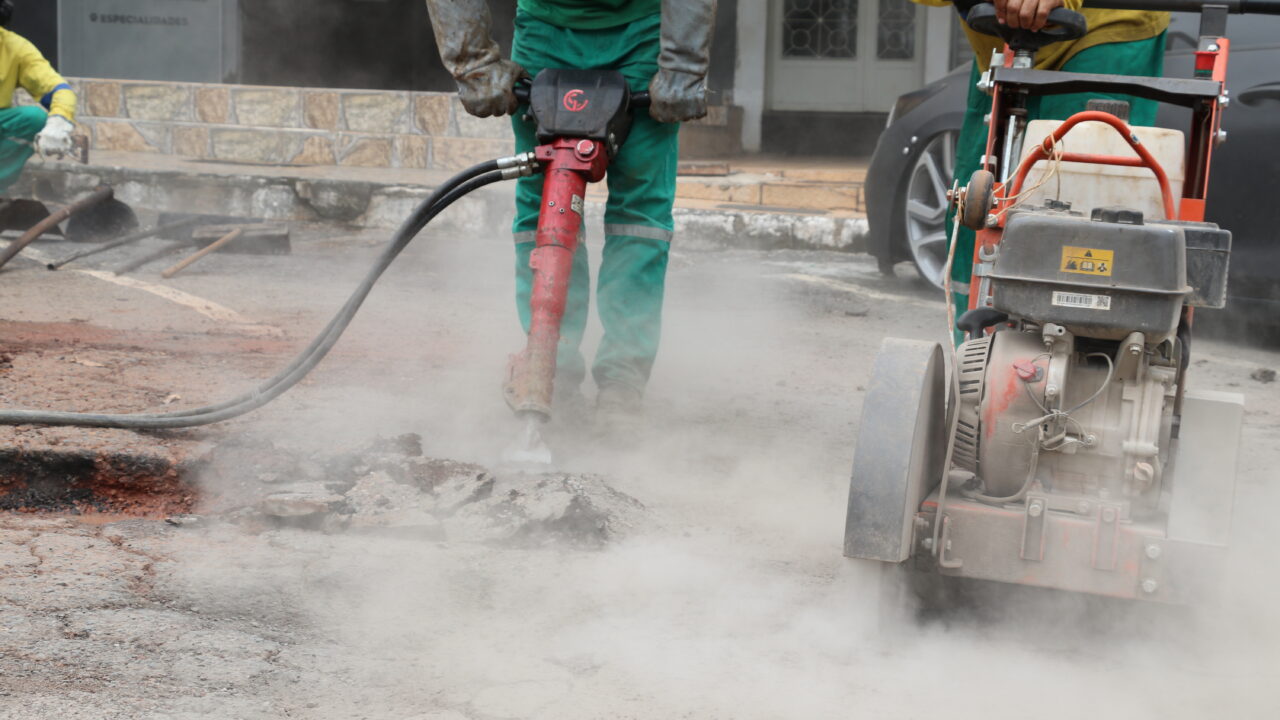 Equipes seguem nas ruas com usina de asfalto em funcionamento, poda de árvores e limpeza de bocas de lobo durante o feriado