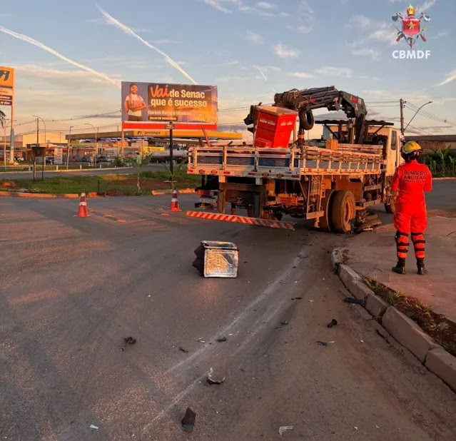 Com o impacto, a motocicleta ficou presa sob o caminhão. Equipes do Corpo de Bombeiros Militar do Distrito Federal foram acionadas e prestaram atendimento à vítima ainda no local, mas o motociclista não resistiu aos ferimentos e teve o óbito constatado no local da ocorrência.