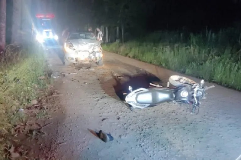 Um motociclista de 29 anos sofreu traumatismo cranioencefálico, teve fratura exposta na perna direita e cortes pelo corpo após se envolver em um grave acidente de trânsito, na noite do sábado (8). A colisão ocorreu na estrada geral da Linha Salete, interior do município de Anchieta, no Extremo-Oeste de Santa Catarina.
