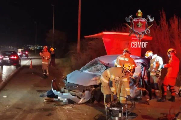 O Corpo de Bombeiros Militar do Distrito Federal (CBMDF) deslocou 15 homens e quatro veículos para o socorro. Quando as equipes chegaram ao local do ocorrido, encontraram o carro da vítima fora da pista, na margem direita, sentido Santo Antônio do Descoberto.