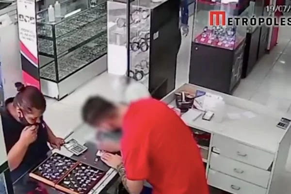 Silvio Tamai Junior, dono da Ótica e Relojoaria Reiban, contou ao R7 que a suspeita entrou no estabelecimento e pediu para olhar os anéis. A mulher quis ver as peças de três mostruários.