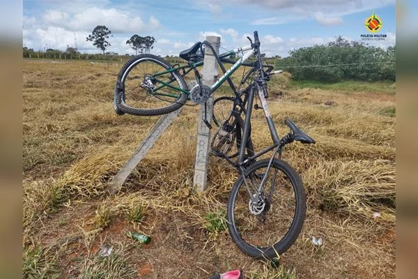 Imagens feitas após o acidente mostram o impacto das vítimas no Corsa da motorista, presa em flagrante pela PMDF. A bicicleta parou no gramado, ao lado da pista.