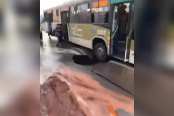 Um ônibus foi parcialmente engolido por uma cratera que se abriu na Avenida Brasil, no bairro Cidade Jardim, em Anápolis, a cerca de 55 km da capital goiana. O problema foi causado pelo rompimento de uma adutora da Companhia de Saneamento de Goiás (Saneago).