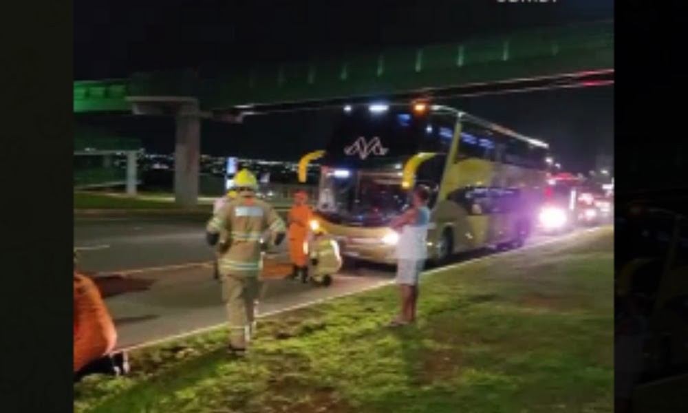 Um ônibus interestadual atropelou um pedestre no início da EPTG, sentido Brasília, próximo à passarela do DF Plaza Shopping Center, entrada de Águas Claras – DF nesta quarta-feira (30). O Corpo de Bombeiros Militar do Distrito Federal (CBMDF) foi chamado para prestar socorro na ocorrência.