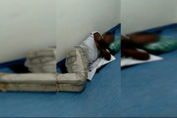 Pelas imagens, é possível ver duas pessoas deitadas no corredor do centro de atendimento enquanto esperam.