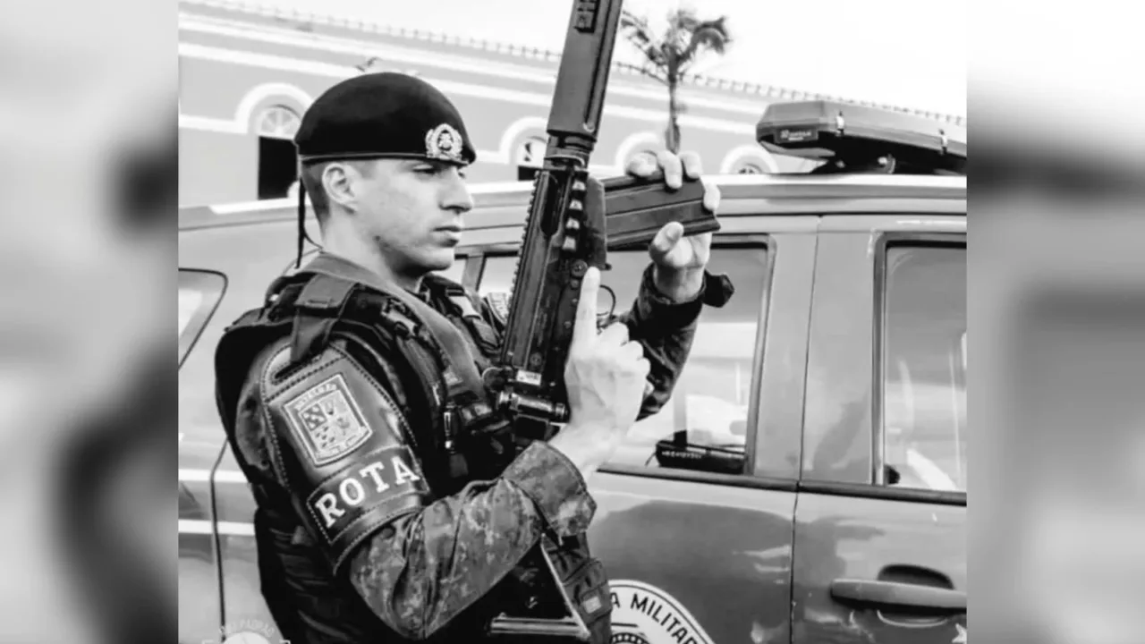O soldado da PMSP Samuel Wesley Cosmo morreu após ser atingido por um tiro no rosto durante patrulhamento em Santos, São Paulo