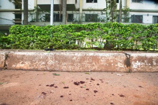 O filho cessou o ataque. Jogou um canivete do tipo borboleta usado no ataque no jardim do prédio, saltou a varanda e, com as mãos repletas de sangue, ficou sentado no meio-fio em frente ao edifício.