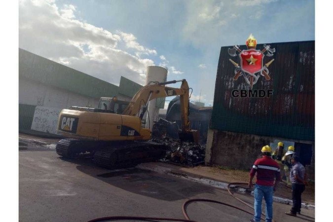 O galpão destinado a armazenar lâmpadas e painéis de led, que pegou fogo na noite de terça-feira (15/8), precisou ter parte de sua estrutura demolida nesta quinta-feira (17/8). O armazém fica na Cidade Estrutural, ao lado da 8ª Delegacia de Polícia Civil.