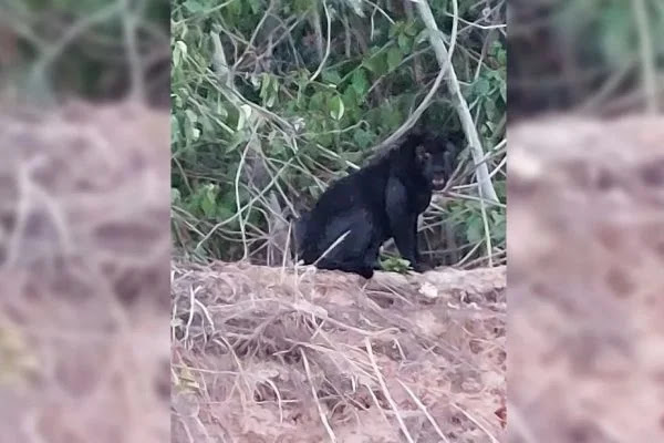 Goiânia – Um grupo de pescadores flagrou uma uma onça-preta às margens do Rio Araguaia, no distrito de Luiz Alves, em São Miguel do Araguaia, no nordeste goiano. O registro foi feito em um vídeo, gravado pelo guia de pesca Adair Pereira. Nas imagens, o felino aparece em um barranco encarando o grupo que passava pelo rio.