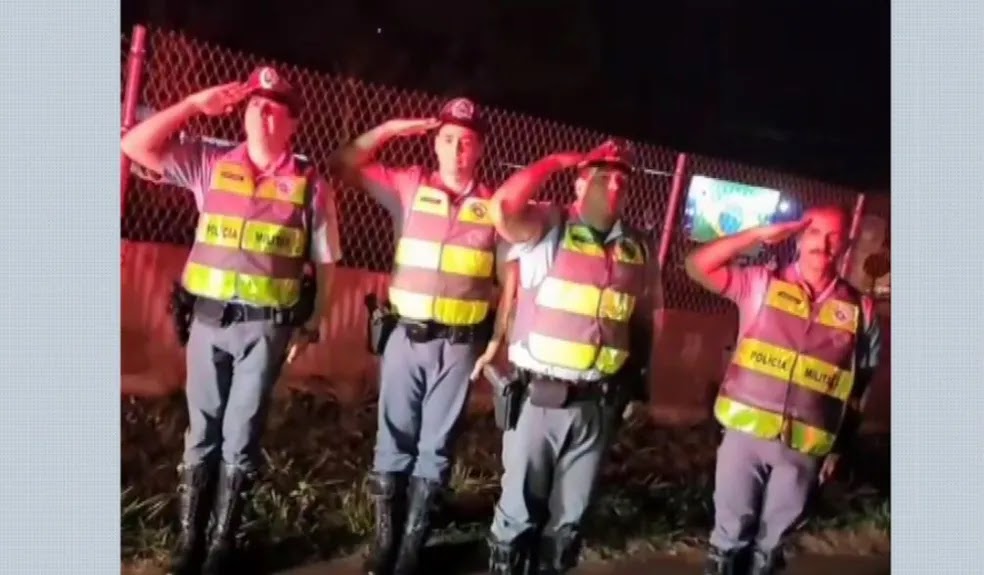 O vídeo que circula em grupos do Whatsapp mostra quatro policiais do batalhão de Polícia Militar Rodoviária de São Paulo prestando continência. Os apoiadores, que se reuniam no local contra o resultado das eleições do último domingo (30), gritam em apoio aos PMs.