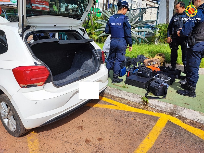 A Polícia Militar recebeu a informação de que os autores do furto estariam num veículo W/Polo branco e que pegaram rumo à Taguatinga.
