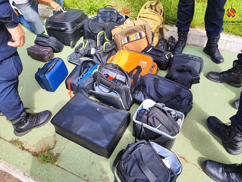 Nas mochilas tinham uma etiqueta com nome e contato dos donos.