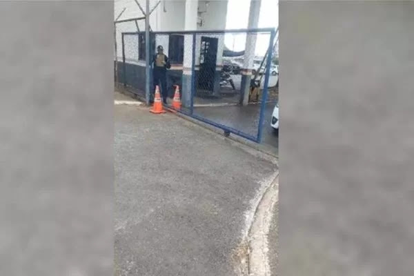 Veja imagens dos policiais abrindo o portão manualmente: