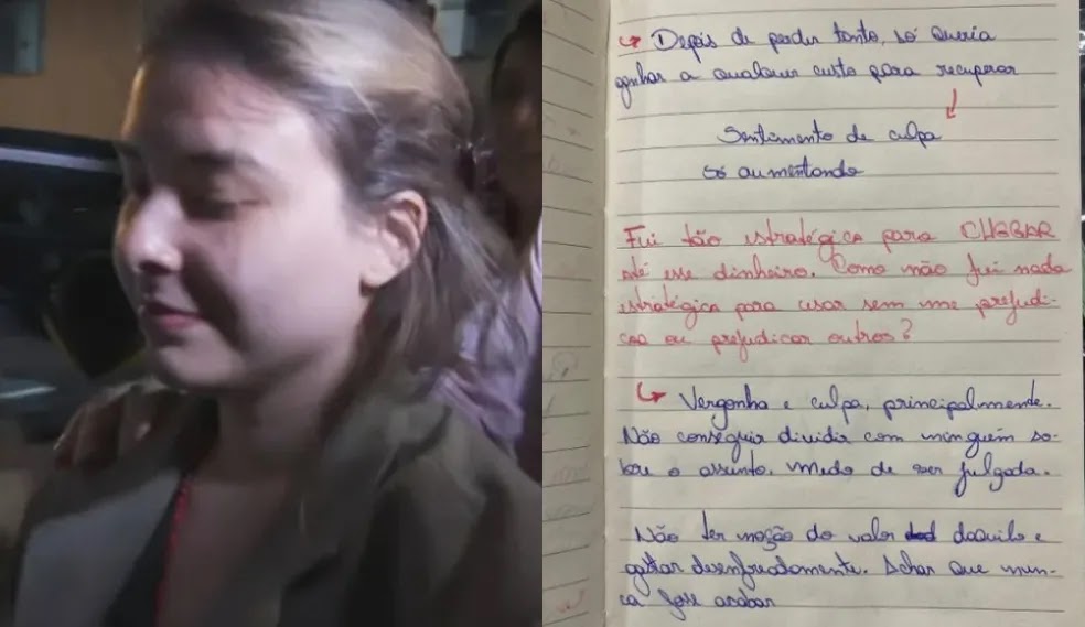 Nas folhas, a jovem escreveu sobre situações que seriam relacionadas a um suposto arrependimento e, também, à frustração ao não conseguir recuperar o dinheiro.