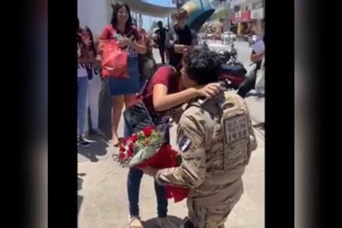 Uma surpresa feita por um policial do Batalhão Especializado de Policiamento do Interior (Bepi) da Polícia Militar de Toritama, agreste de Pernambuco, repercutiu negativamente nas redes sociais entre este sábado e domingo (7 e 8/10). Nas imagens, o homem aparece, fardado, na frente de um colégio do ensino fundamental e faz um pedido de compromisso a uma adolescente.