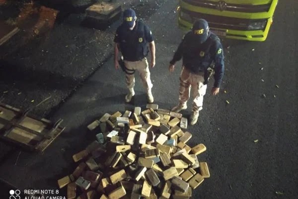 De acordo com a PRF, por volta das 19h30, policiais rodoviários federais pararam um caminhão que fazia um trajeto suspeito e, durante a vistoria, localizaram 186 tabletes de pasta base de cocaína, matéria-prima para a produção da droga em pó. A droga estava escondida sob o assoalho da carroceria do caminhão.