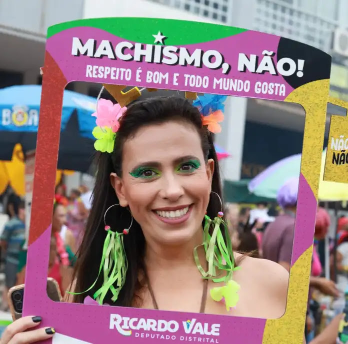Ricardo Vale, deputado distrital e vice-presidente da CLDF, caiu na folia neste carnaval levando a campanha contra o machismo!