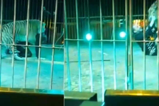 Um tigre mordeu o domador de um circo em Lecce, na Itália, no pescoço, durante uma apresentação ao vivo, causando desespero no público.