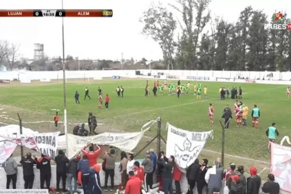 Clássico da quarta divisão entre Luján e Alem foi paralisado com 15 minutos de jogo, após bomba estourar perto do banco de reservas