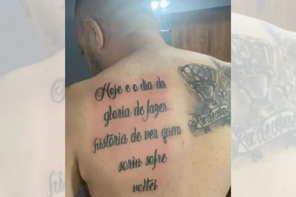 Nos comentários, os internautas apontaram os erros em duas das palavras escritas nas costas do rapaz. “Só faltou 2 R’s aí. Um no sorRiu, e um no sofreR”, disse um internauta. “Sorriu com um R de Ronaldo”, disse outro, nas redes sociais. “Com certeza o tatuador não é cruzeirense, com esse tanto erRo”, afirmou outro internauta. “O português tá ruim! Mas a intenção tá linda”, comentou outro usuário da rede social.
