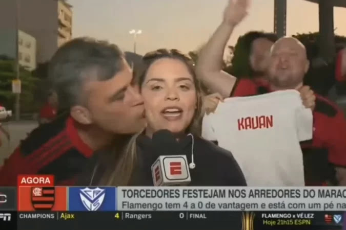 Nas imagens da transmissão, é possível ver o momento em que Jéssica Dias sofre o assédio. Ela passava as informações sobre a partida do Flamengo e mostrava a animação da torcida quando um dos homens se aproxima e a beija sem consentimento. Pelas redes sociais, a ESPN repudiou o episódio e informou que está tomando as providências necessárias.