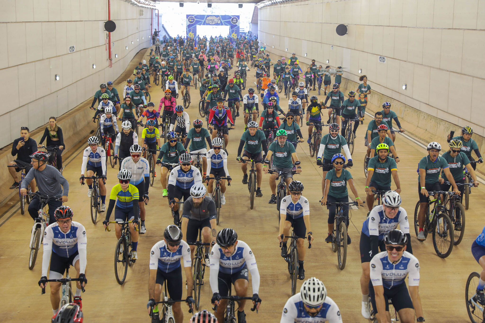 Às vésperas de o trânsito no Túnel Rei Pelé ser liberado para carros e motos, 500 ciclistas cruzaram uma das passagens subterrâneas da obra viária na manhã deste sábado (3) durante o Passeio Ciclístico 2023. O evento abre a programação comemorativa de inauguração do túnel, que conta com corrida e desfile de carros antigos neste domingo (4). Já a liberação do complexo está marcada para segunda-feira (5) às 10h.