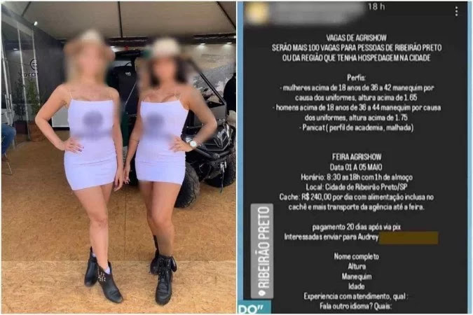 O anúncio de vagas de emprego para mulheres em uma feira agrícola em Ribeirão Preto, interior de São Paulo, repercutiu negativamente por pedir um “perfil de academia”, “malhada”, do tipo “Panicat” — referência às assistentes de palco do extinto programa Pânico na TV, no qual as mulheres tinham corpos curvilíneos e volumosos e ficavam de biquíni durante a atração.