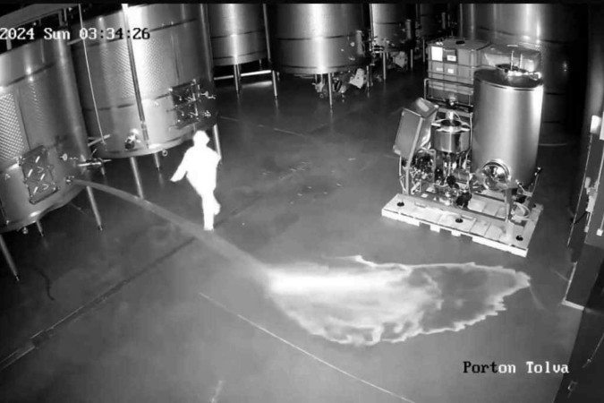 A sabotagem ocorreu no dia 18 de fevereiro e resultou num prejuízo de 2,5 milhões de euros (cerca de R$ 13 milhões). A ação foi registrada por câmeras de segurança, que filmaram a mulher entrando no local usando um capuz e abrindo um dos tanques de armazenamento, deixando a bebida vazar pelo chão. Confira o registro