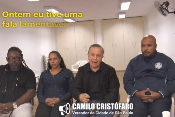 O vereador Camilo Cristófaro, que teve uma fala racista vazada durante sessão da Câmara Municipal de São Paulo, publicou um vídeo ao lado de funcionários negros para dizer que não é racista.