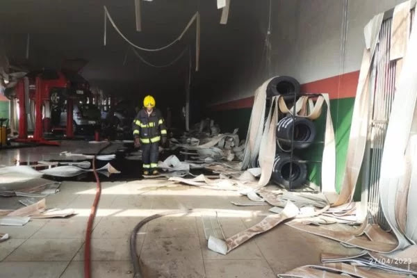 Segundo o Corpo de Bombeiros, equipamentos e o forro da oficina também acabaram incendiados. Ninguém se feriu