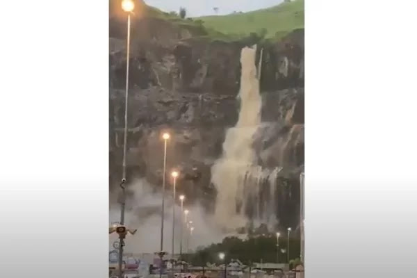 Um temporal acabou criando uma “cachoeira” e causou o desabamento de pedras nesse sábado (28/1) na pedreira vizinha ao Shopping Nova Iguaçu, na Região Metropolitana do Rio de Janeiro. Assustadas, as pessoas que estavam no local registraram o fenômeno em vídeos.
