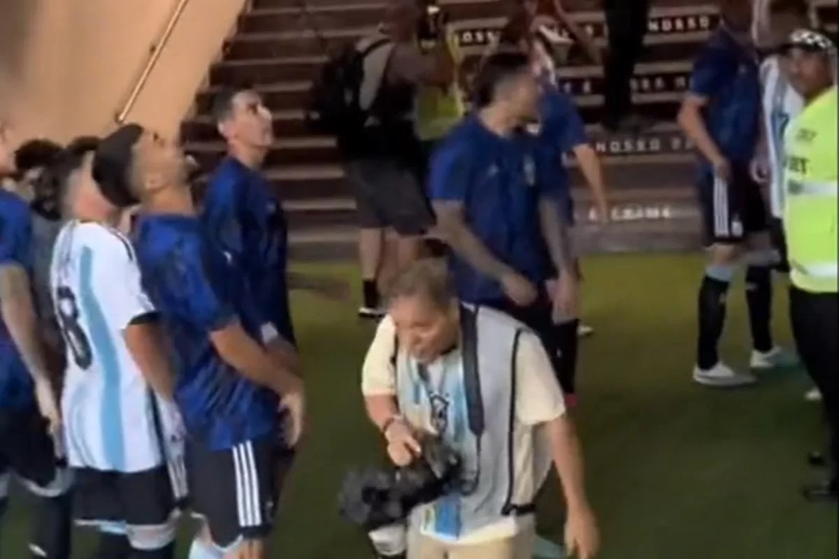 Angel Di María foi flagrado em vídeo cuspindo em grupo de torcedores do Brasil após argentinos deixarem o campo por causa de confusão