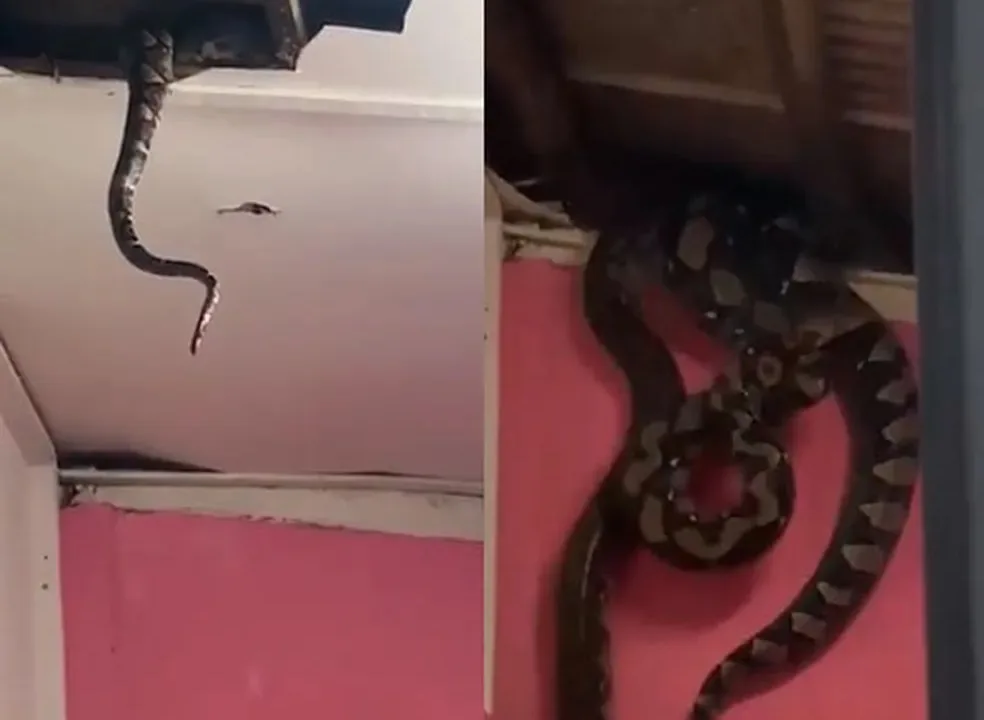 Nesta segunda-feira (13), o Departamento de Defesa Civil da Malásia retirou duas serpentes do forro do teto de uma casa na cidade de Bentong, perto da capital Kuala Lumpur. As pítons, que acasalavam quando foram encontradas, tinham 5 e 4 metros de comprimento e pesavam 32 e 25 quilos, respectivamente.