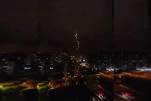 Momento da queda do raio e do incêndio foi registrado nas redes sociais. Caso ocorreu próximo à subestação da CEB em Águas Claras