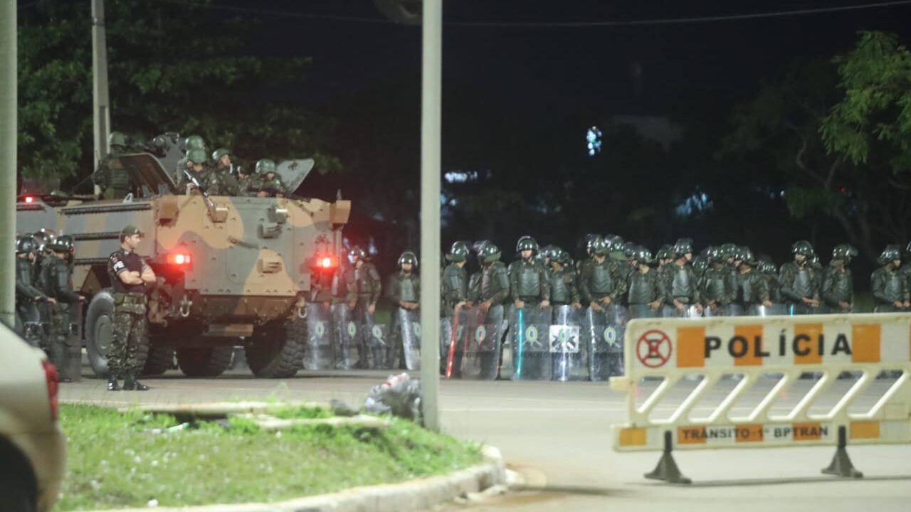 Com carros blindados, militares do Exército impedem a entrada da Polícia Militar do DF no Quartel-General do Exército, em Brasília, para retirada de bolsonaristas. Como a capital da República está sob intervenção federal em todo o sistema de Segurança Pública, a PMDF recebeu a ordem do Governo Federal de retirar acampamento da área, mas os policiais não conseguem entrar.