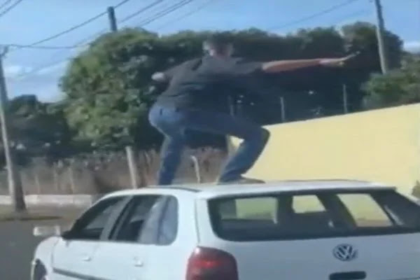 Em uma ação perigosa, um homem subiu no teto de um carro em movimento, no meio do trânsito de Uberlândia, em Minas Gerais. De acordo com informações, o caso ocorreu na terça-feira (1º/8).
