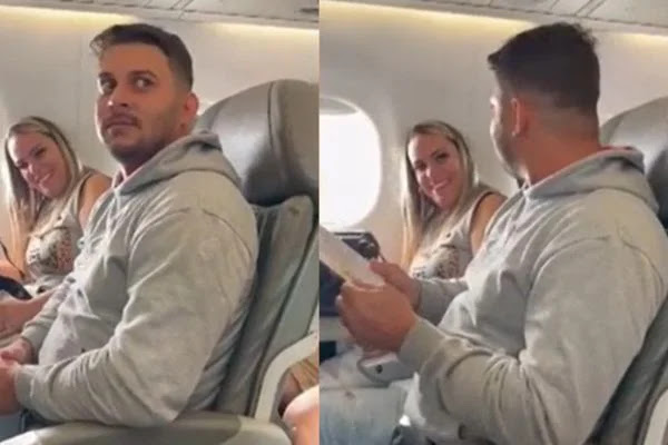 O casal foi aplaudido pelos passageiros do avião. No momento, Mariana e Igor passam férias no Rio de Janeiro.