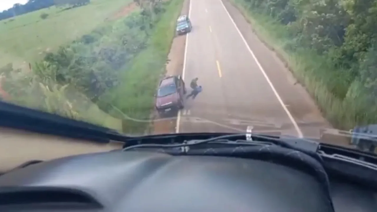 Logo depois, o helicóptero recebeu um novo chamado sobre um terceiro veículo roubado, uma caminhonete vermelha, que estava em fuga pela BR-364.