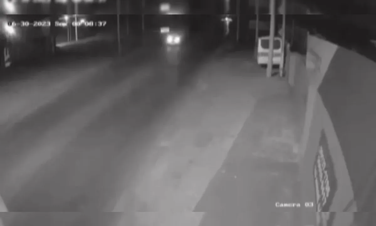 Pelas imagens, é possível ver o carro em alta velocidade antes de acertar uma das paredes da entrada da cidade.
