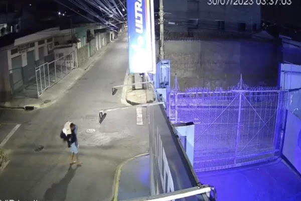 Por volta das 3h36, câmeras de outros pontos do bairro registram o homem ainda carregando a jovem no ombro.
