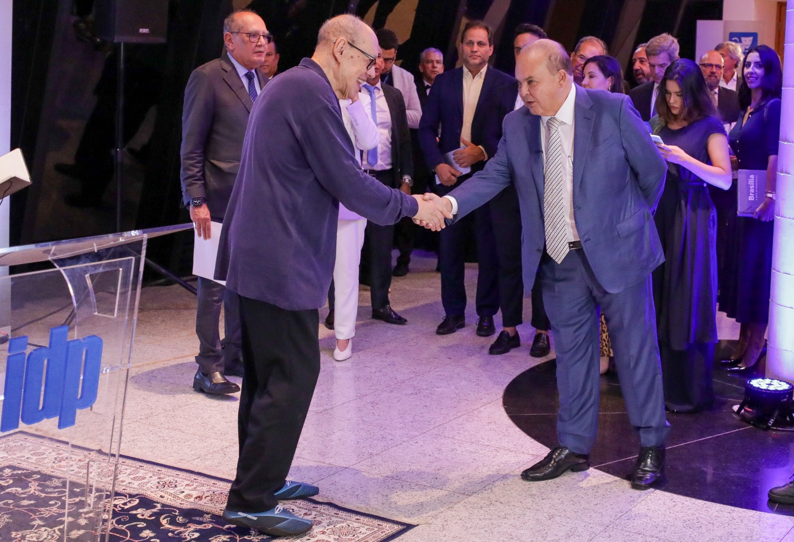 Governador participou de evento nesta terça-feira (22), no IDP da Asa Norte; obra ‘Brasília, a arte da democracia’ reúne textos e fotos para destacar momentos fundamentais da democracia brasileira e homenagear nomes ligados à cidade, como JK e Niemeyer